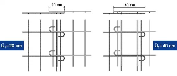 48 cm / 48 cm (zB. Beton B30) | 48 cm / 20 cm (Schlaufenstoss) |